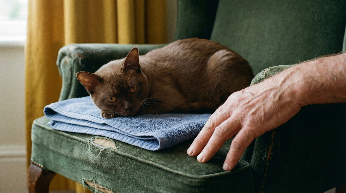 Я посмотрела на маму. Мама поджала губы и показала глазами в сторону зала. Я заглянула. Кресло стояло на месте - тёмно-зелёное, с потёртыми подлокотниками. Но на правом подлокотнике лежало сложенное синее полотенце. Аккуратно сложенное. Так складывают, когда хотят, чтобы было удобно лежать.