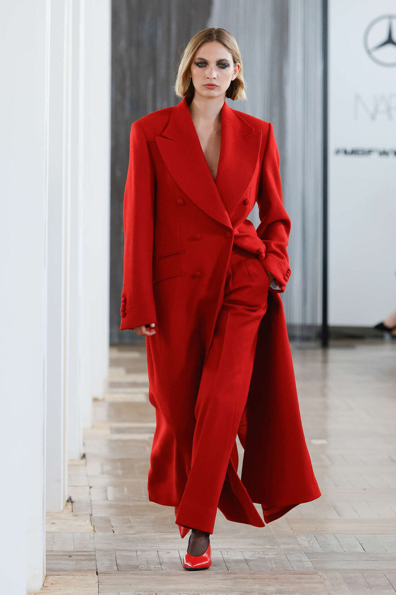 Если вам тоже надоели коллекции, где все слишком сложно и слишком “для подиума”, то Baro Lucas можно посмотреть с интересом. Здесь как раз много идей, которые хочется не просто разглядывать, а реально запомнить для своего гардероба. Коллекция 110DB получилась сдержанной, элегантной и очень собранной. Основа показа — хороший крой: четкие жакеты, длинные пальто, строгие брюки, платья с чистыми линиями. Все выглядит так, будто вещь не кричит, а просто уверенно делает образ дороже. Что берем на заметку в первую очередь? Конечно, жакеты и пальто с хорошей формой. Это как раз те вещи, которые могут вытянуть даже самый простой комплект. Вторая идея — спокойная дорогая палитра. В коллекции красиво работают черный, молочный, серый, мягкий розовый, бежево-серые оттенки и насыщенный красный. Такой набор цветов легко адаптировать в обычную жизнь, потому что он выглядит благородно и не надоедает через неделю. Еще один момент, который здесь особенно понравился, — сочетание строгости и мягкости. С од