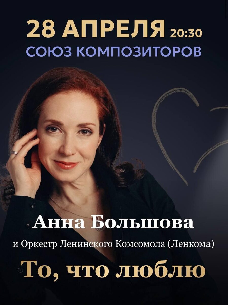 🎶 28 апреля в 20:30 в джаз-клубе Союз Композиторов выступит Анна Большова вместе с Оркестром Ленинского Комсомола. И да, сейчас билеты можно взять со скидкой 20%. Это театральный концерт: живая музыка, поэзия, вокальные номера. В программе — знакомые мелодии и более современные произведения. Формат камерный, без пафоса, ближе к душевному разговору со сценой. Мне нравится сама площадка. Союз Композиторов — уютный зал, хороший звук, можно спокойно расположиться за столиком. Атмосфера не как в большом дворце культуры, а скорее как в европейском джаз-клубе. Для буднего вечера — очень подходящий ритм. ⏰ 28 апреля, 20:30 💵 от 1600 вместо 2000 ₽ 🔥 скидка 20% по промокоду АННА28 📍 Брюсов пер., 8/10 стр. 2 🎫 https://vteatre.com/anna-bolshova-i-orkestr Возрастной ценз 0+, но время вечернее — я бы рассматривала это как формат для взрослого выхода. Иногда такой культурный перерыв посреди весны очень кстати ✨