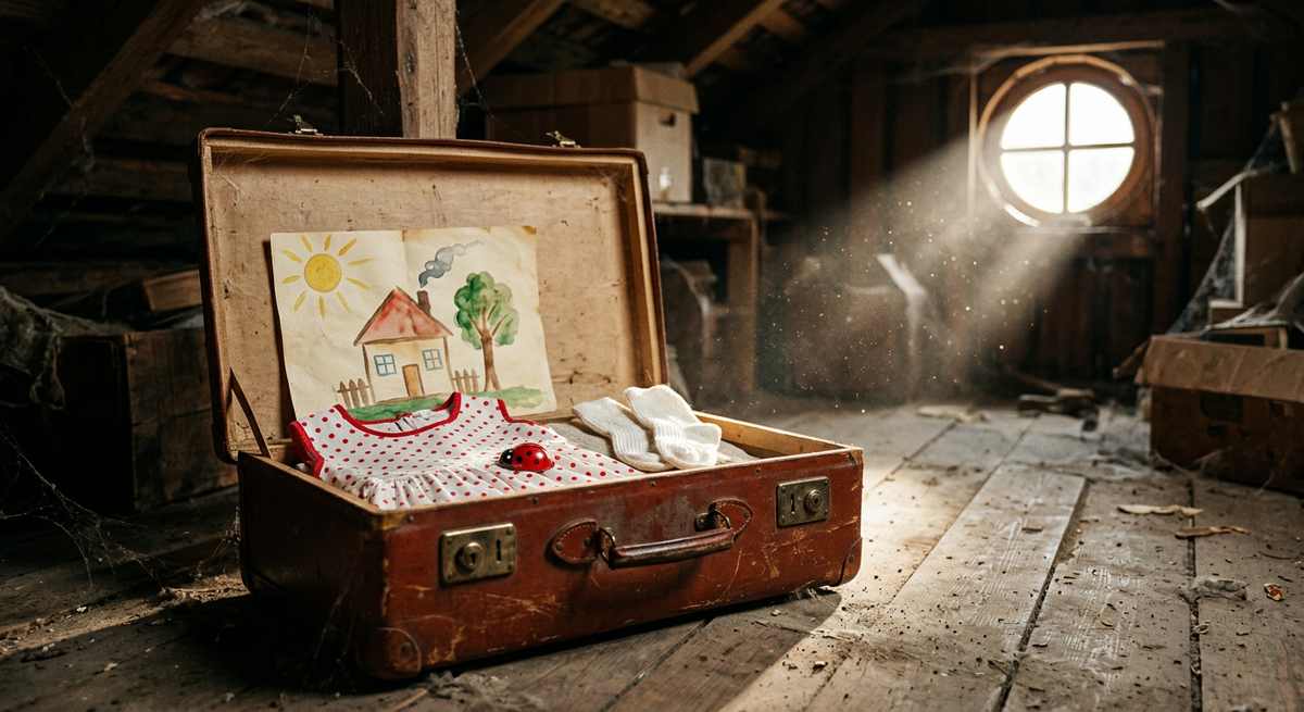 Мы искали этот дом полгода. Нашли по цене ниже рынка — красивый, светлый, с садом. Бывшие хозяева уехали в спешке, почти ничего не объясняя. Мы не придали значения. Заехали, расставили мебель, уложили дочку. А утром я полез на чердак за стремянкой — и увидел чемодан. Старый, рыжий, с инициалами. Я открыл его. Внутри лежали вещи. Платье в горошек, белые гольфы, заколка с божьей коровкой. Вещи моей дочери. Те самые, что я купил ей на прошлой неделе. В доме, в котором мы живём один день...