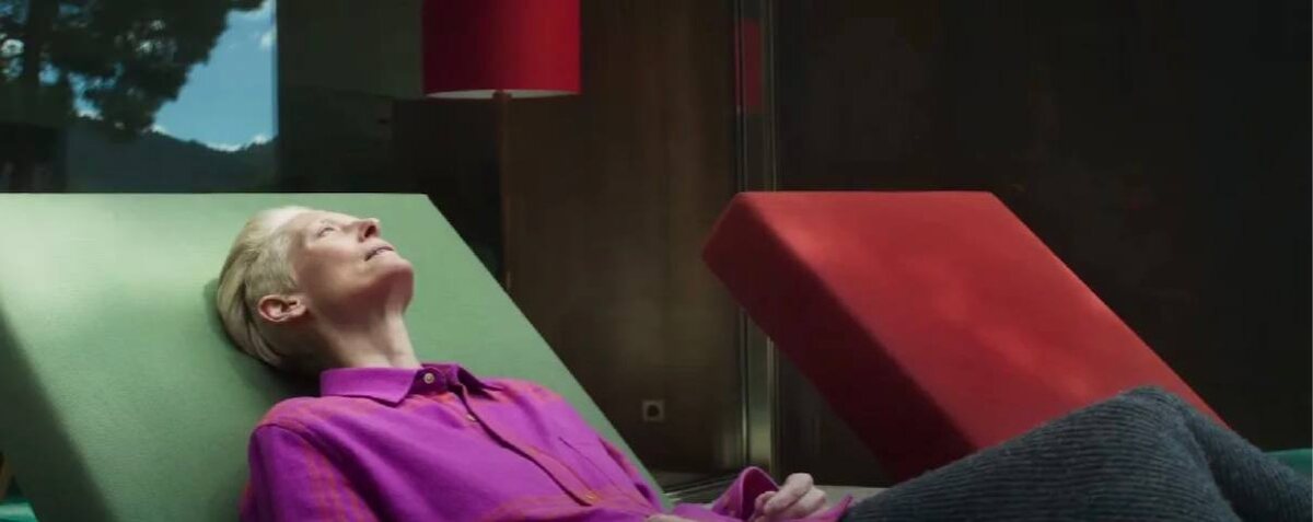 Истинного, сафьянового, цвета запекшейся крови и спелой вишни. Фильм Педро Альмодовара «Комната по соседству» это когда свет врывается в объектив, сжигая пленку дотла. Как фотограф-импрессионист, я живу светом и цветом. Для меня «смотреть»значит «чувствовать фактуру». И здесь маэстро, словно Сезанн в своем последнем периоде, раскладывает реальность на чистые, почти агрессивные спектры. Алая дверь, за которой скрывается неизбежность. Изумрудная зелень леса, слишком яркая, чтобы быть реальной, похожа на цветной сон, который снится человеку, стоящему на пороге вечности. Апельсиновый сок в стакане, бьющем по стеклу бликами; шерстяной свитер, в который хочется зарыться лицом. Альмодовар всегда был художником интерьеров, но здесь его палитра становится главным нарратором. Он говорит с нами языком импрессионистов, мы не видим границ формы, мы видим рефлексы. Желтый цвет осенних листьев отражается на лице Тильды Суинтон, делая его фарфоровым, почти прозрачным. Красный цвет дивана спорит с кр