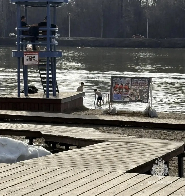 На озере Тёплое в Инорсе подростки решили открыть пляжный сезон и весело плескались в воде, а очевидцы спокойно наблюдали за ними, забравшись на вышку спасателей рядом. Об инциденте сообщили в МЧС региона. Спасатели предупредили: апрельская вода — это не шутки, и подобные забавы могут окончиться плачевно. Температура воды в озере очень низкая, что может привести к судорогам, остановке дыхания или сердечному приступу. В ведомстве обратились к родителям с убедительной просьбой объяснить детям, что апрель – не время для купания, и напомнить правила поведения у водоемов, которые еще только начали освобождаться ото льда. Фото: МЧС РБ.