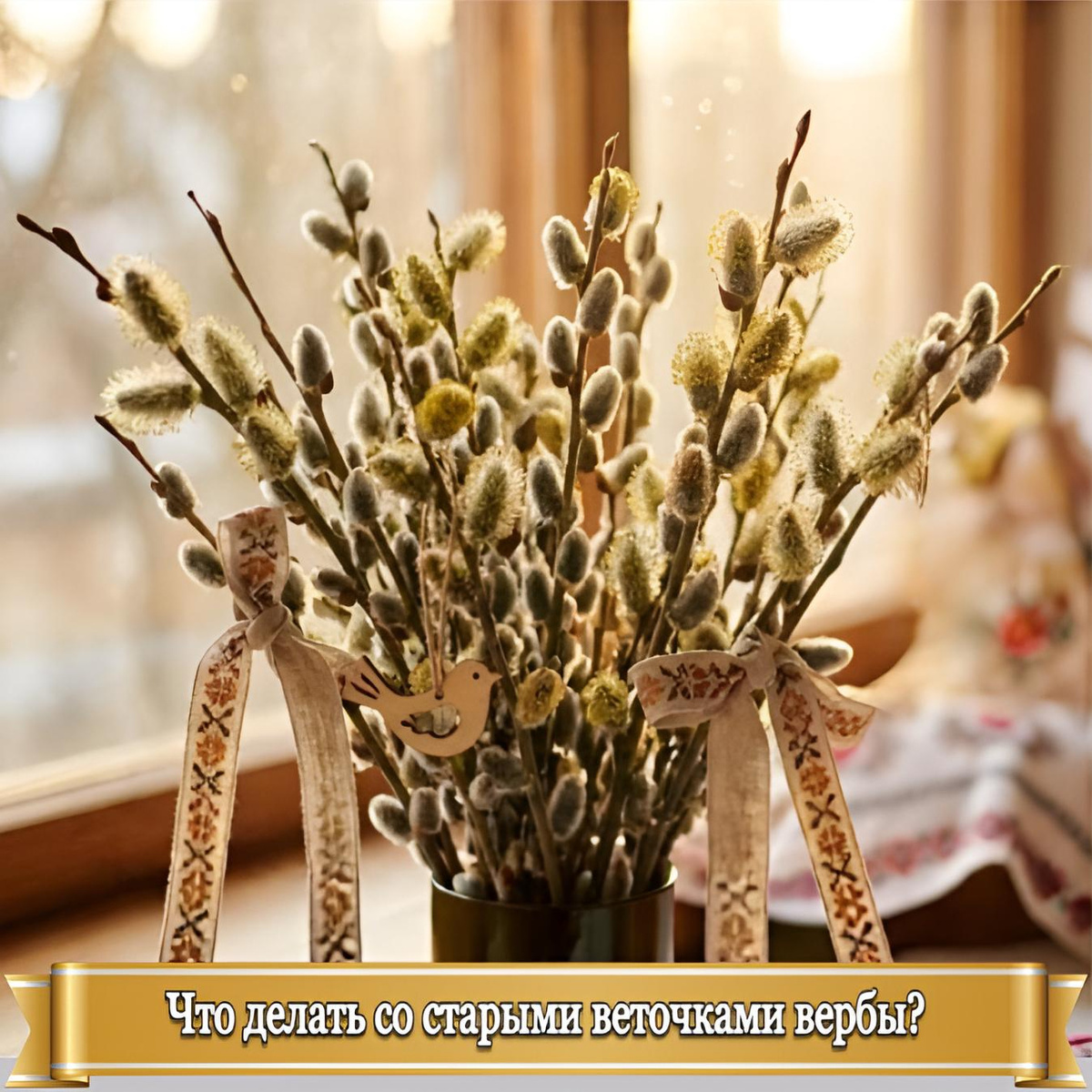 Этот вопрос мне регулярно приходится слышать накануне Вербного воскресенья. Прежде всего хотел бы предостеречь вас, мои дорогие, от языческого отношения к освященным веточкам. Это не «оберег» и не «амулет». Это отражение светлой радости верующих в праздник Входа Господня в Иерусалим, символ нашего приобщения к ликующей встрече Спасителя и упования на грядущее воскресение из мертвых. Не случайно во время освящения святой водой окропляются верующие с вербой в руках, а не сами веточки. В молитве, которую произносит священник, об этом так и говорится. Ко всему, что освящается святой водой и молитвами, нужно относиться бережно и с почтением. По сложившейся традиции, такие веточки вербы принято хранить рядом с иконами. Старые веточки просто так выбросить нельзя, чтобы они не были попраны. Но их можно сжечь, а пепел развеять, либо закопать в чистом месте, где не ходят люди. Бывает, что веточки, опущенные в воду, пускают корешки. Тогда их лучше посадить. Подписаться на канал в МАХ (работает