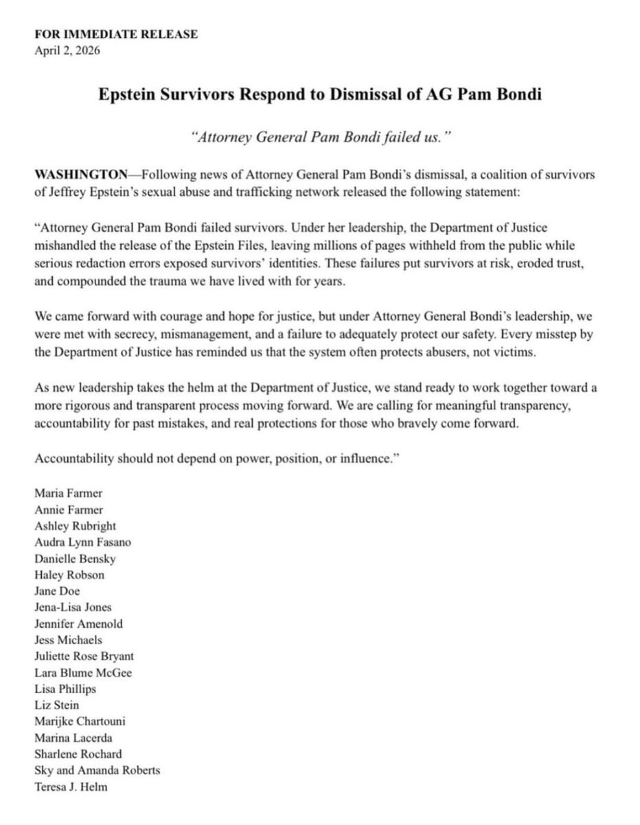 Pam Bondi FAILED us — Epstein SURVIVORS on her firing