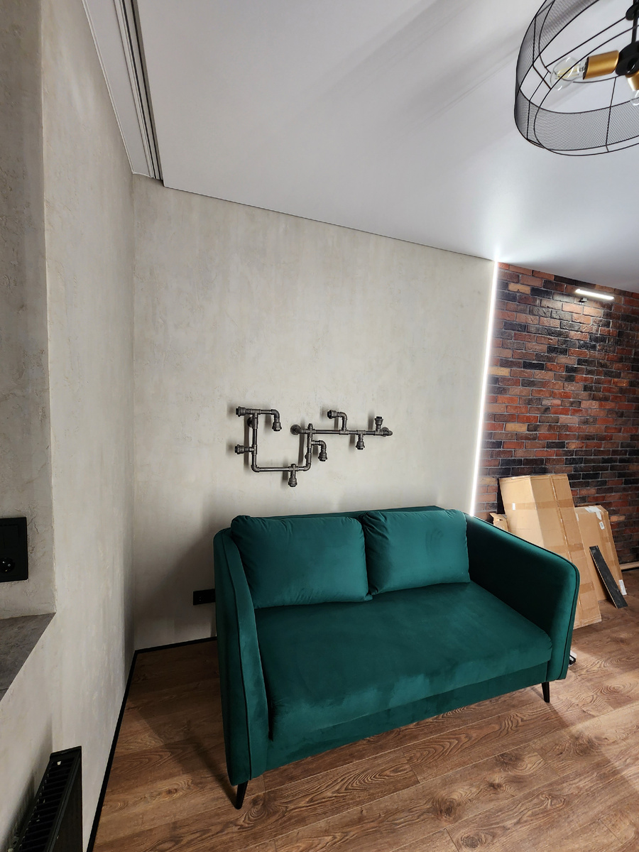 Заказчик хотел сделать бюджетно стиль лофт в квартире и небрежную стену на балконе. Работа выполнена согласно дизайн-проекту из декоративной штукатурки Effectum Лофт и немного художества на балконе