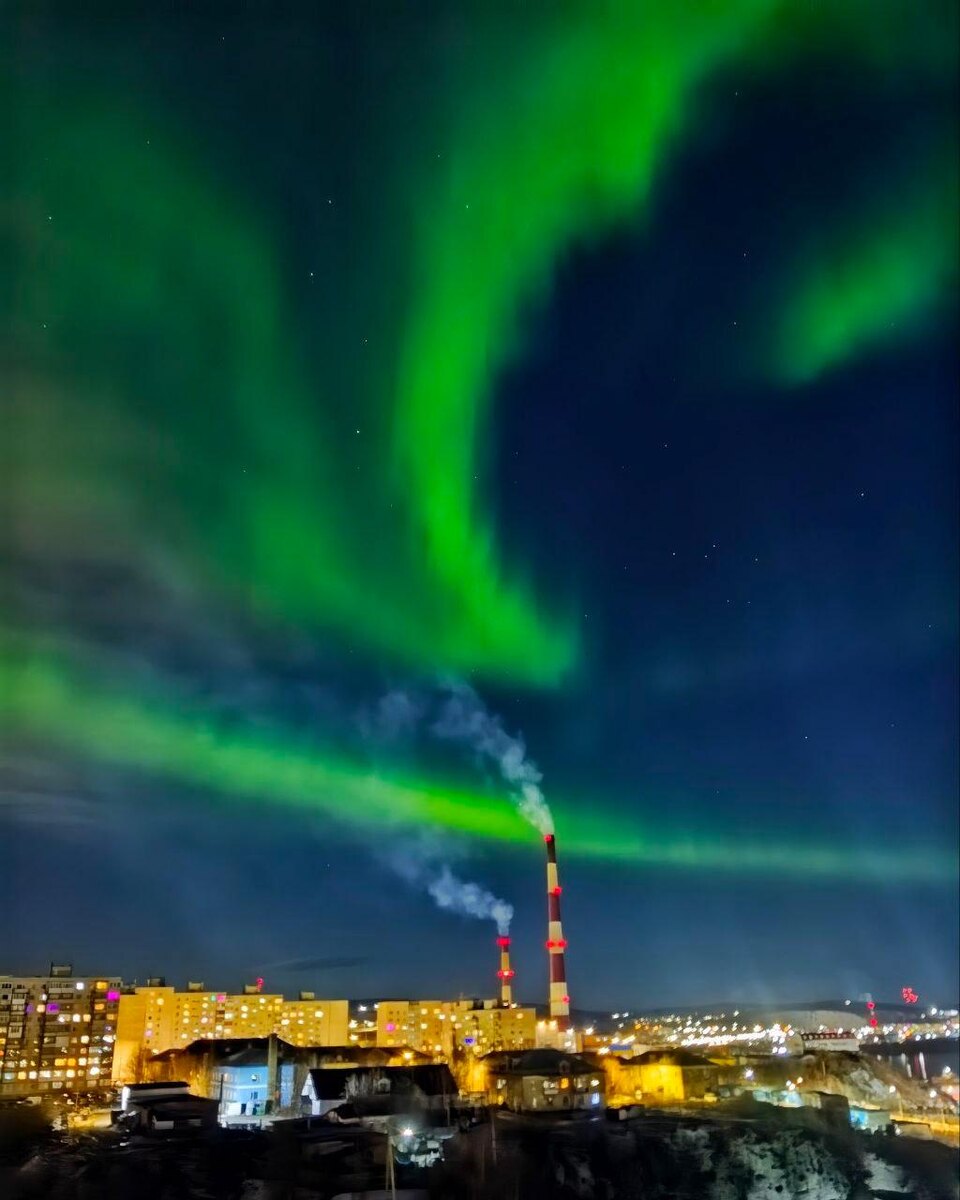 Северное сияние появилось! На фото от наших подписчиков Инны и Алексея — Мурманск и Пермский край 💚 ——— Подписывайтесь на Гисметео: 🌐 Телеграм · 🌐 Вконтакте