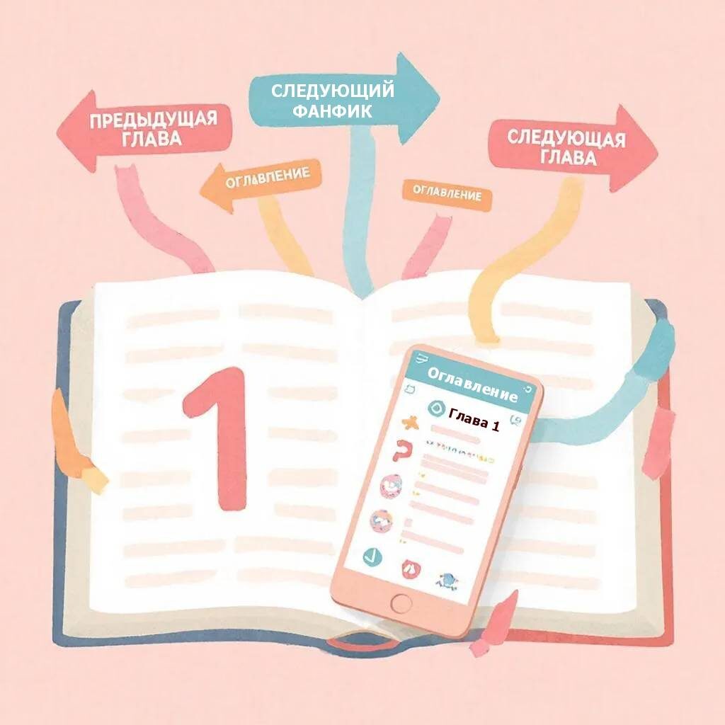 Приветствую, дорогие читатели! Если вы уже заглядывали в мои публикации на ФикБуке (рекомендую установить их приложение), то заметили: фанфики в своём большинстве - это не короткие зарисовки на пару экранов. Некоторые истории начинаются с глав по 6-8 листов и разгоняются до 300+ страниц! Как говорят многие авторы "черновик вышел из-под контроля"))) Вставлять их в Дзен одной простынёй нельзя: текст будет неудобно читать, он потеряет ритм, а сам Дзен просто не рассчитан на такие объёмы. К тому же, перед и после некоторых глав писались заметки для читателей, и их я тоже стремлюсь сохранить. Поэтому я придумала для вас систему, которая делает чтение удобным и приятным. Всё как в настоящей книге, только онлайн. Каждый большой фанфик - это цикл статей-глав. Главы публикуются последовательно, одну за другой. Вы их не пропустите. Чтобы вы могли читать непрерывно, без постоянного возврата в мою страницу, в начале и в конце каждой главы я вставлю блок навигации. Он выглядит примерно так: Навигац
