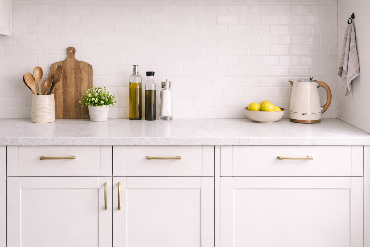 Со временем на столешнице и открытых поверхностях накапливаются предметы, которые вроде бы ежедневно используются, но вместе создают ощущение загруженности.