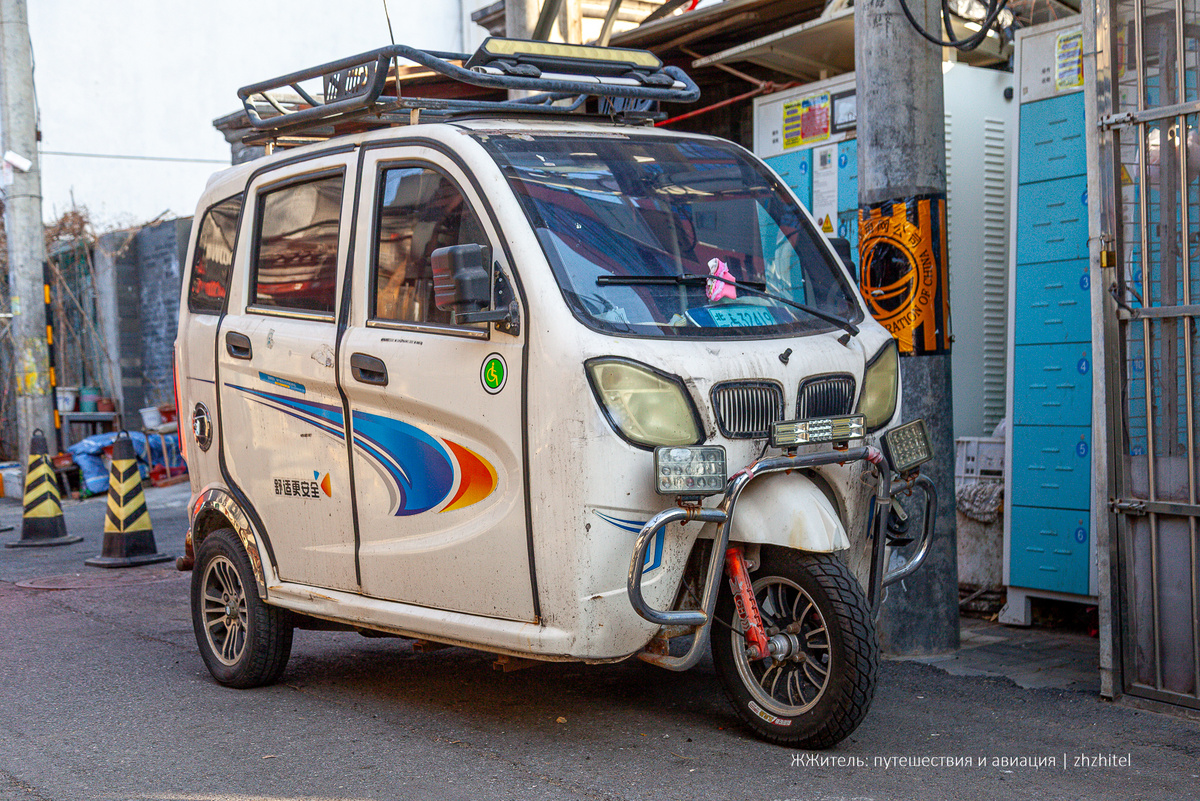 На улицах Китая можно увидеть очень необычные автомобили. Они похожи то ли на половинки автомобилей, то ли на трехколесные мотоциклы с кузовом. Возможно, называть эти транспортные средства автомобилями не совсем корректно. Это трициклы, многие из них используются как мотоколяски для инвалидов. На них есть значок «инвалид». Главные достоинства этих транспортных средств: дешевизна и простота. Вот аналогичное транспортное средство попроще. Я помню, что в СССР выпускались мотоколяски, только в моей памяти отложились четырехколесные модели. Помните автомобиль в «Операции Ы»? Потом еще были квадратные СМЗ С-3Д с жесткой крышей. Я уже давно не видел на наших дорогах специализированный и доступный транспорт для инвалидов. Понятно, что можно переоборудовать стандартные машины, но они будут далеко не всем по карману. В Китае же «инвалидки» выпускают массово. Многие из них работают на электричестве. Модели есть разные. Я поискал стоимость этого трицикла. Оказалось, что на наши деньги новый стоит