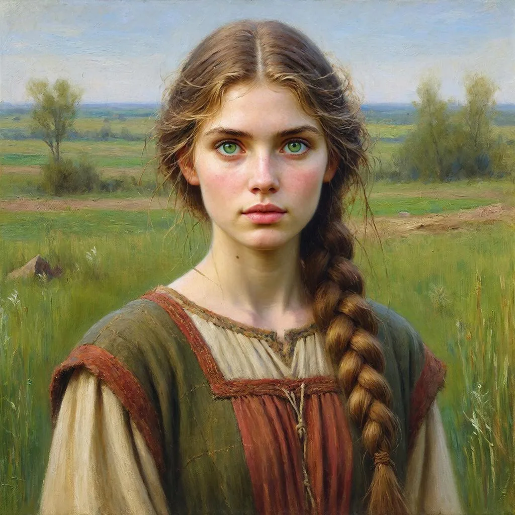 Перед ним стояла не согбенная старуха. Перед ним стояла молодая женщина — высокая, статная, с русой косой, перекинутой через плечо, и глазами зелёными, яркими, как молодая весенняя трава. Те же глаза, что у Маши, но ещё глубже, ещё древнее, ещё светлее. От неё веяло такой силой, таким спокойным, вековым могуществом, что у Егора перехватило дыхание и ноги сами собой сделали шаг назад.