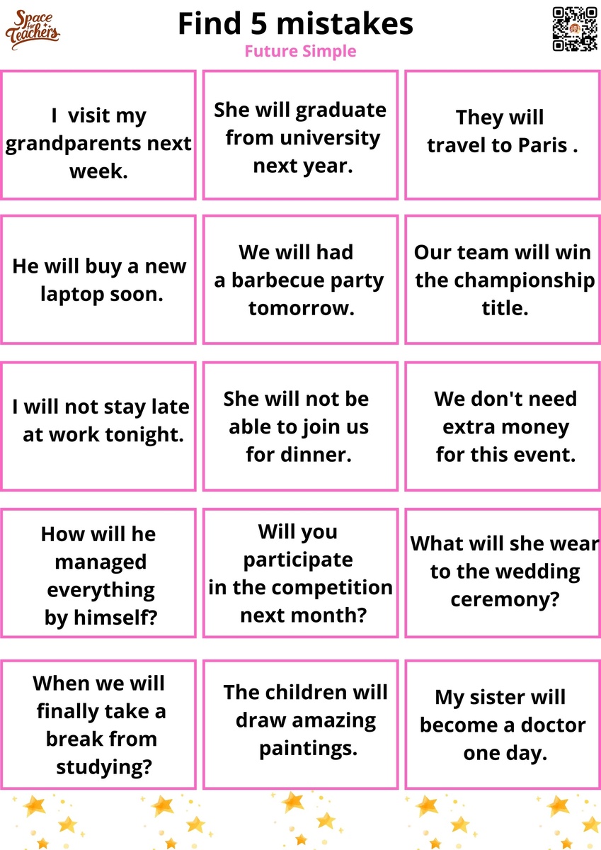 Сегодня мало. Ибо мне сейчас приходится идти по пути: прочитали – перевели – написали. Но кое-что делаем. ))) 🔹Поиск ошибок Там три времени Simple, в каждой таблице 5 ошибок. Я такое люблю. Дети обычно тоже. Если на то пошло, это уже подход к олимпиадам. ) Там часто бывают задания: найди ошибку и исправь, если все правильно, поставь галочку. Ссылка: https://vk.com/feed?w=wall-197644483_7897