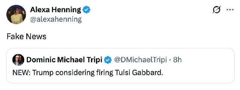 Tulsi Gabbard’s deputy chief of staff calls ‘FAKE NEWS’ on rumor of Trump firing her