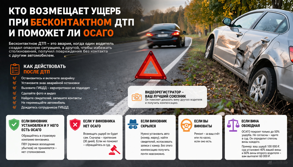 🚗 Кто возмещает ущерб при бесконтактном ДТП и поможет ли ОСАГО