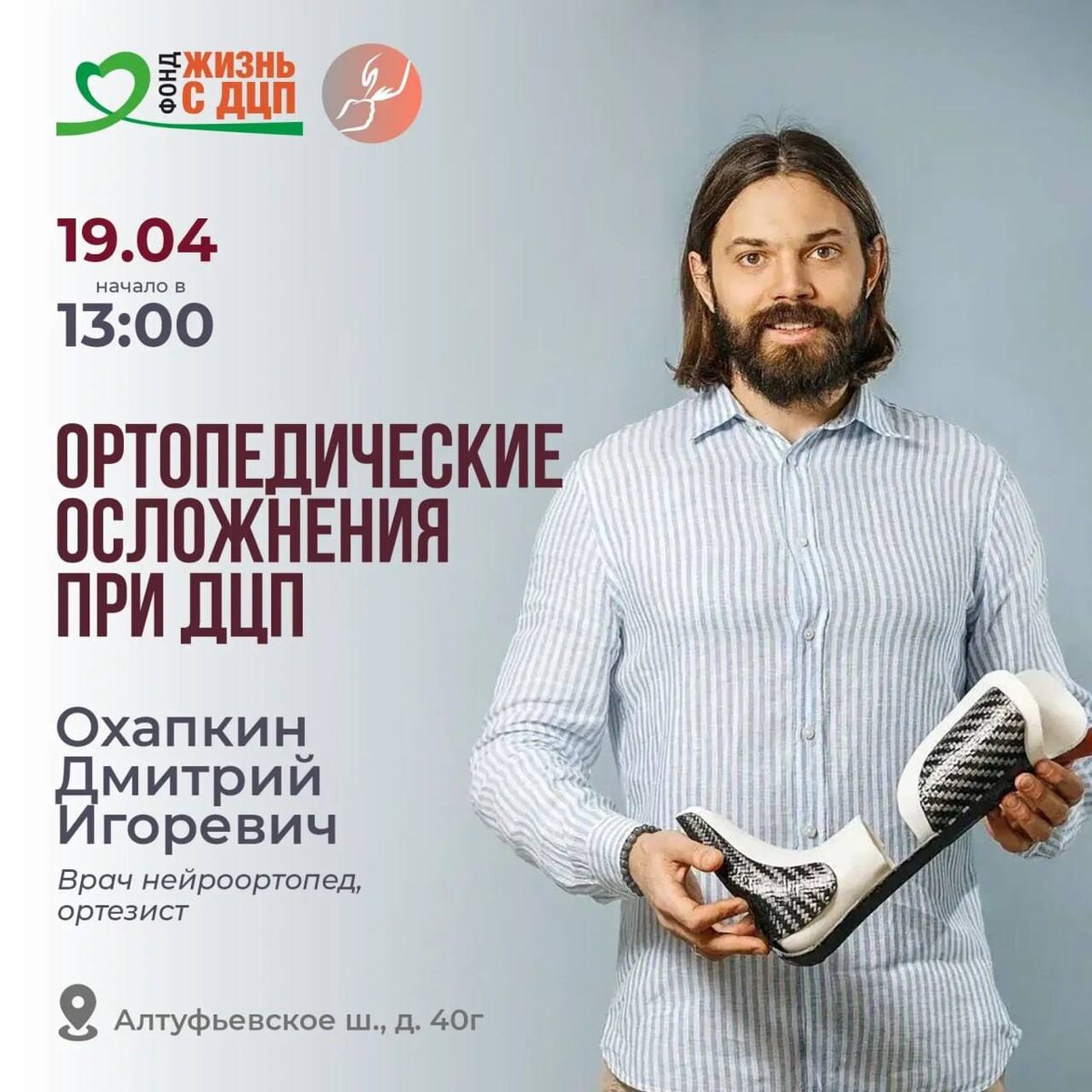 Охапкиным Д.И. Дорогие родители детей с ДЦП и другими заболеваниями! По вашим многочисленным просьбам 19 апреля в 13.00 в помещении фонда "Жизнь с ДЦП" по адресу Алтуфьевское шоссе 40Г, состоится встреча с врачом нейроортопедом, ортезистом Охапкиным Дмитрием Игоревичем. Доктор выступит с докладом "Ортопедические осложнения при ДЦП" . Записаться и задать вопросы Приглашаем принять активное участие.