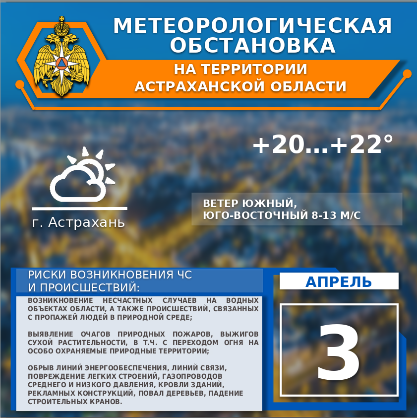 По г. Астрахань: переменная облачность. Без существенных осадков.