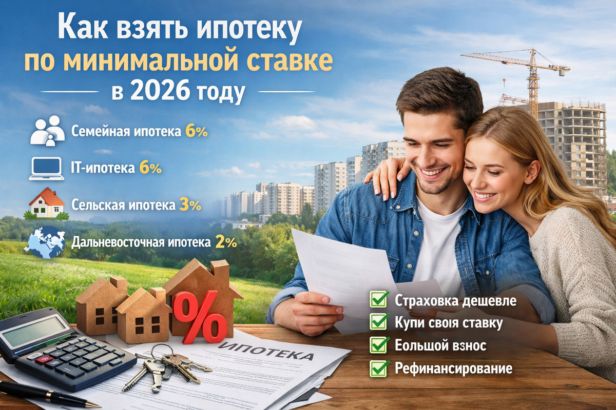 Как взять ипотеку по минимальной ставке в 2026 году — реальные способы снизить процент. Разбираем, как получить ипотеку с минимальной ставкой: льготные программы, субсидии от застройщиков, снижение процента и рефинансирование. Практические советы эксперта.