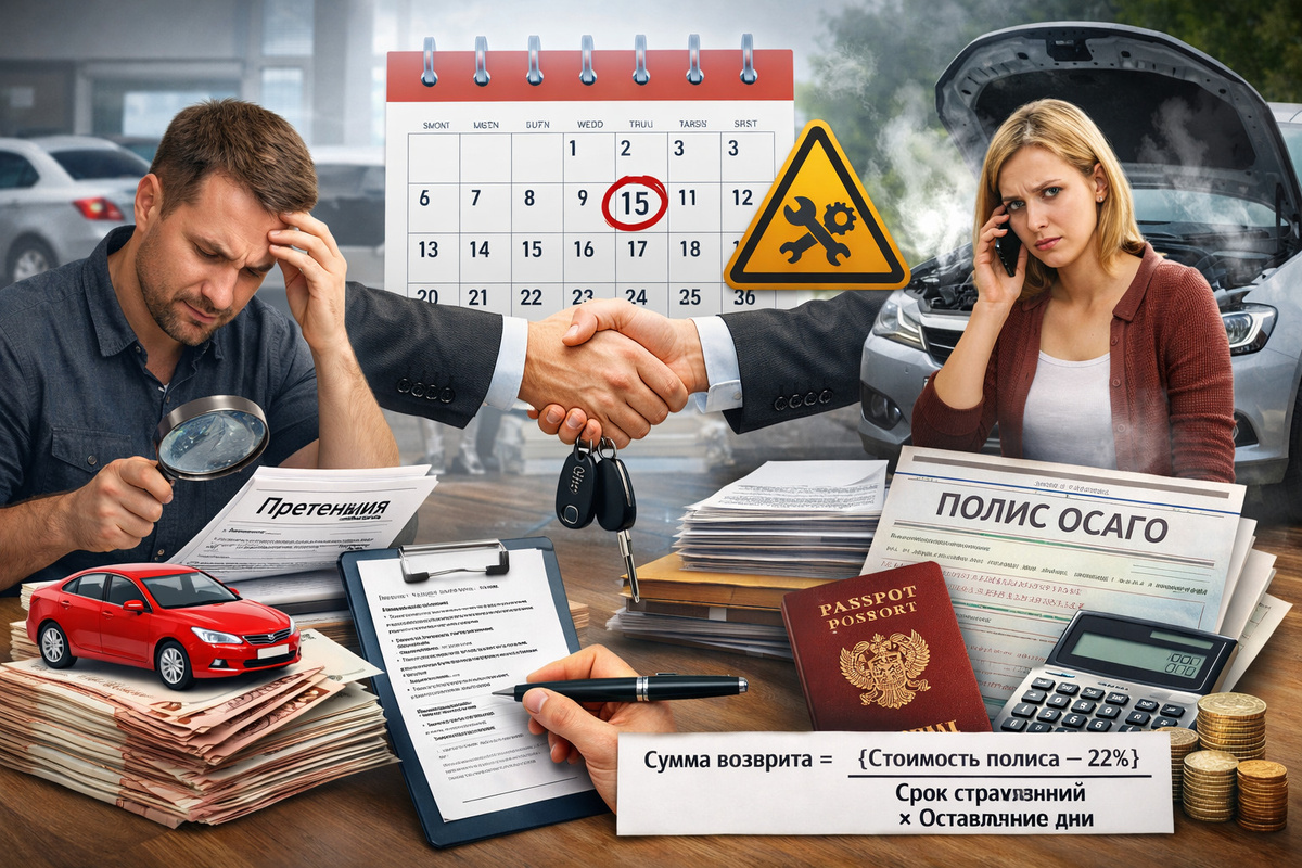 Как вернуть автомобиль после покупки и отказаться от ОСАГО — пошаговая инструкция 2026. Разбираем, как вернуть автомобиль продавцу: из салона, у частника, при кредите. Пошаговый порядок, документы, сроки и возврат ОСАГО с расчетом суммы.