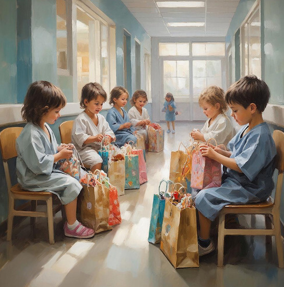 – Ребята, рассаживайтесь обратно, вам же ещё хотят подарить подарки. – громко сказала медсестра. Её никто не услышал.