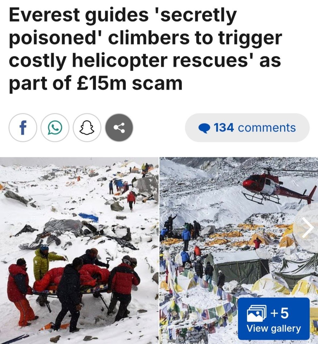 Очень не приятные новости - гиды на Эвересте годами травили туристов ради заработка.
