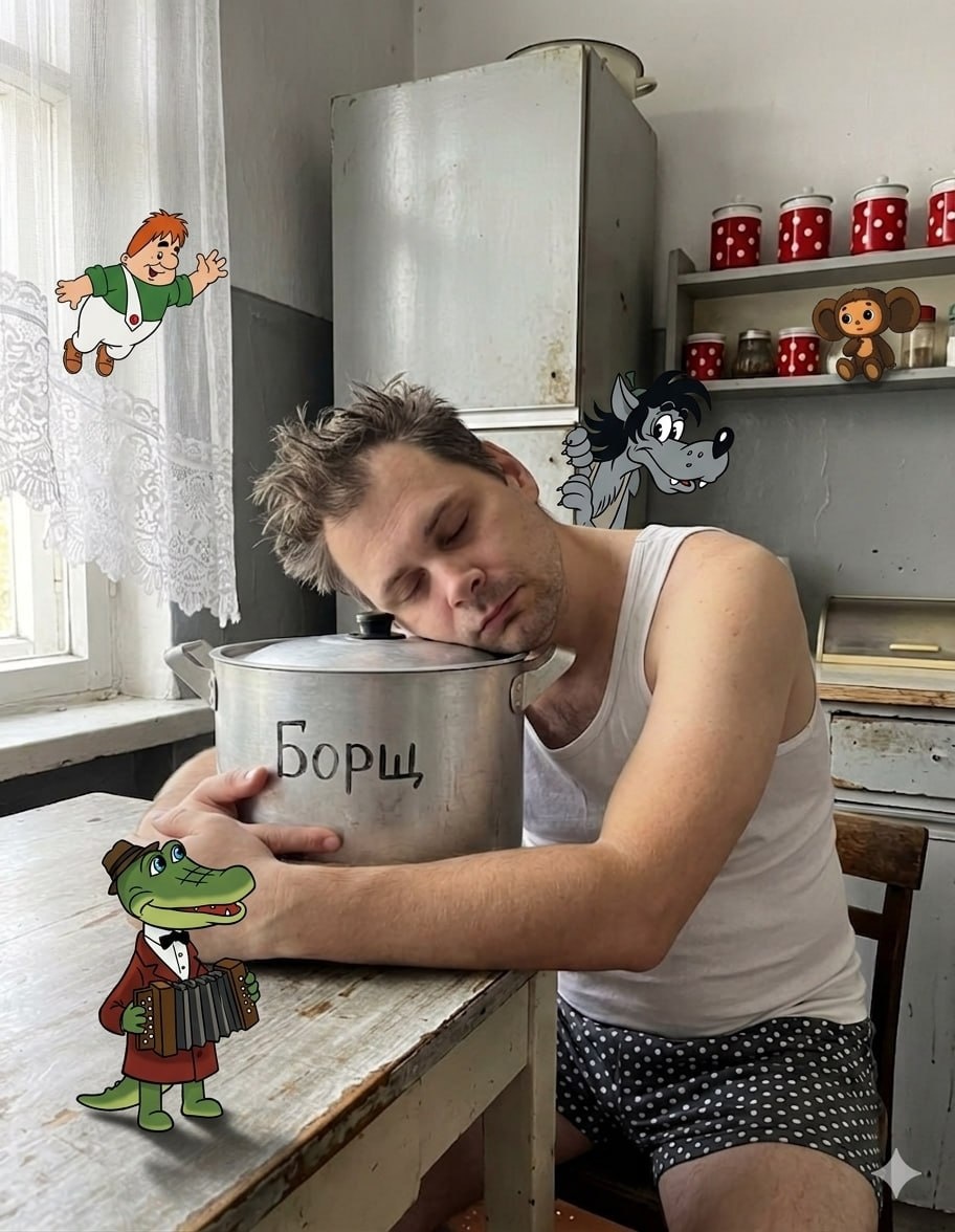С добрым утром! В промпт можно вписать своих персонажей:) Создай фото. ## Основа — оригинальное фото Использовать оригинальное фото без каких-либо изменений. Сохранить лицо, тело, позу, пропорции и всю сцену в точности как на фото. **Черты лица, внешность и облик человека должны быть перенесены с загруженных фотографий максимально точно — без изменений и интерпретаций.** ## Добавление персонажей Добавить мультипликационных персонажей (ваши персонажи) в сцену, органично вписав их в реальное окружение. Персонажи должны взаимодействовать с человеком и пространством: - располагаться на полу, в руках, рядом со стулом или другими объектами - частично перекрывать предметы - создавать ощущение настоящего присутствия в реальной сцене ## Стиль персонажей Классическая 2d- или 3d-мультипликация (в зависимости от выбранных персонажей) с точной интеграцией в реальную фотографию. ## Технические требования - сохранить оригинальное освещение сцены - подстроить тени персонажей под реальный источник