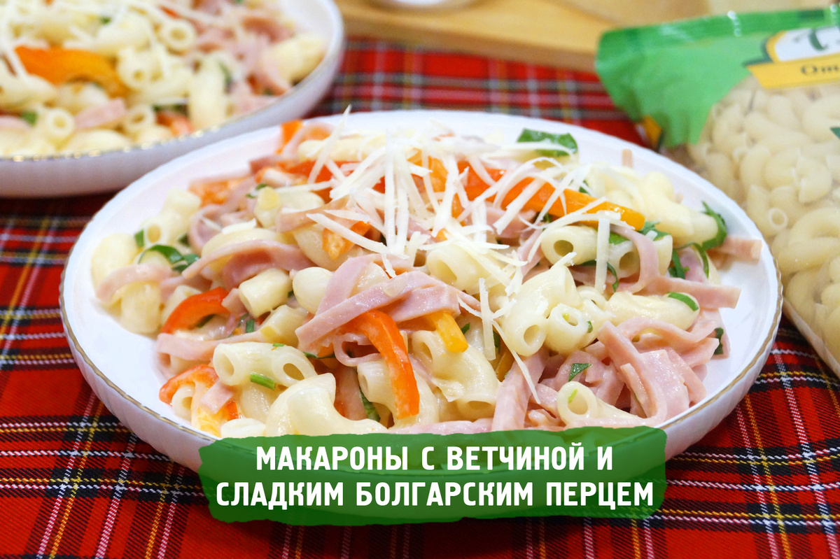 Макароны с ветчиной и сладким болгарским перцем, это отличный способ разнообразить повседневное меню без лишних хлопот. Сочный болгарский перец добавляет блюду не только витамины, но и приятную сладость, которая идеально оттеняет вкус ветчины. Всё это великолепие соединяется с макаронами сливочным соусом, превращаясь в сытный и комфортный ужин для всей семьи. Время приготовления: 30 минут. Ингредиенты: 2 литра воды, 300 г макарон ТМ«Алейка», 200 г ветчины, 150 мл сливок 20% жирности, 1 болгарский перец, 1 луковица, 2 зубчика чеснока, 3 ст. ложки подсолнечного масла ТМ«Алейка», 30 г любимого твердого сыра, 1 пучок зелени петрушки, 1 ч. ложка соли. Приготовление: Приятного аппетита!