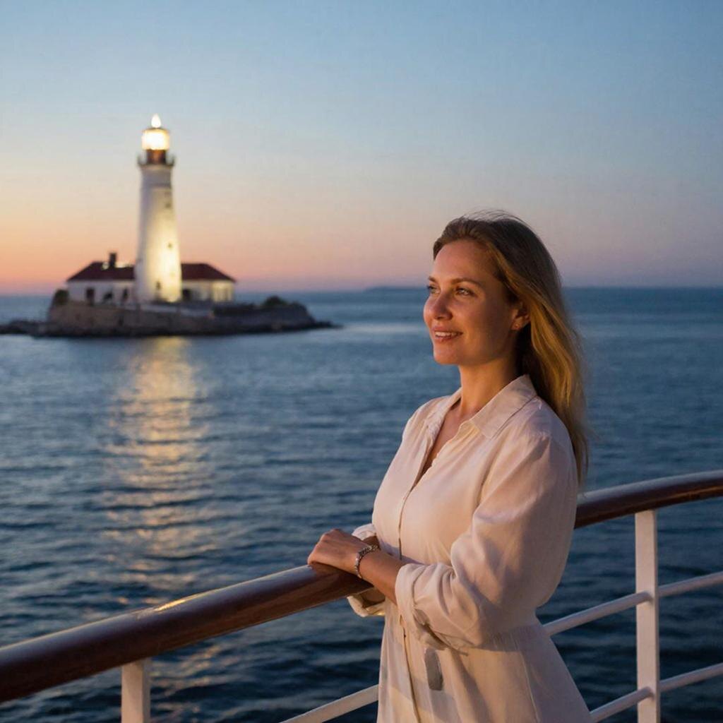 Она села на паром и долго смотрела, как маяк становится всё меньше, а свет — всё ярче. И когда он совсем исчез за горизонтом, она поняла: теперь он всегда с ней. В её памяти. В её сердце. В её обещании вернуться.