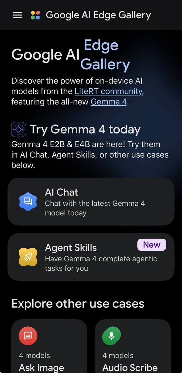 Заметил свежий апдейт для локальных нейросетей на телефоне — Google выпустил Gemma 4 и прокачал AI Edge Gallery