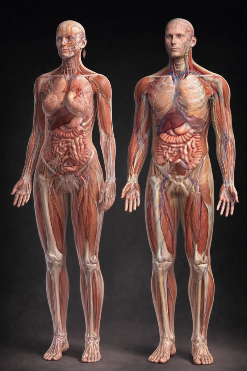 Знакомство с телом. Тело - это система. И у этой системы есть вполне конкретные цифры. Когда их понимаешь, иначе смотришь на себя. Из чего состоит человек: ▪️206 костей - каркас и защита ▪️360+ суставов - подвижность ▪️600+ мышц - движение ▪️сотни связок - стабилизация ▪️фасция - одна непрерывная сеть по всему телу ▪️~100 000 км сосудов - питание ▪️600+ лимфоузлов - очищение ▪️~100 млрд нейронов (мозг), вы только подумайте об этом 😅 ▪️миллионы нервных окончаний в коже - чувствительность Все системы включаются одновременно: ➰кости держат форму ➰мышцы двигают ➰фасция передает напряжение ➰нервная система управляет ➰кровь и лимфа питают и очищают ➰рецепторы дают ощущение Сам человек бесконечный процесс. И если что-то перестает функционировать, нагрузка начинает гулять по телу, появляются зажимы и боль, значит звено цепи где-то отцепилось и нужна ювелирная помощь. #нати_теория