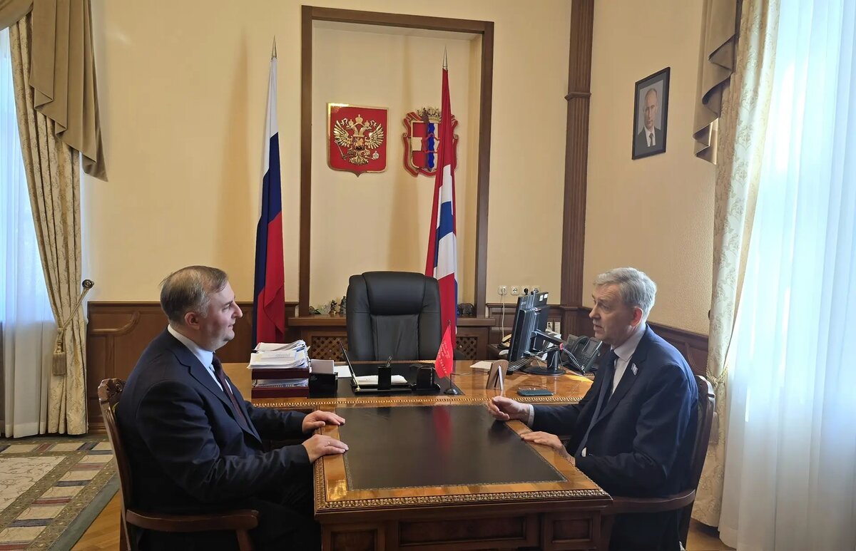В областном парламенте состоялась встреча Председателя Законодательного Собрания Омской области Александра Артемова с Председателем Законодательного Собрания Челябинской области Олегом Гербером. В ней также принял участие заместитель спикера областного парламента Павел Коренной.
