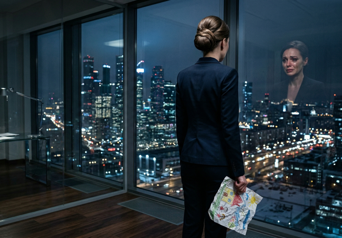 Перед ней, прямо поверх генерального плана нового образовательного центра, лежал обычный альбомный лист. Он был небрежно вырван из дешевой тетради и изрисован простыми цветными карандашами. На этой смятой бумаге был изображен неуклюжий, кривобокий дом, погруженный в кромешную темноту ночи. И только в одном-единственном окне на втором этаже горел пронзительно-желтый, невероятно яркий свет.
