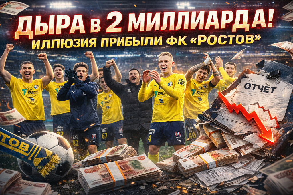 Как ФК «Ростов» вышел из убытков Хорошая новость: ФК «Ростов» впервые после убыточного 2024 года снова в плюсе. Плохая новость — если смотреть чуть глубже, картина становится куда интереснее. Цифры года По итогам 2025 года клуб зафиксировал чистую прибыль 413 миллионов рублей — это на 631 миллион лучше, чем годом ранее, когда «Ростов» ушёл в минус на 218,4 млн. Выручка выросла на 8,8% и составила 2,8 млрд рублей. Главный источник дохода — трансферы игроков. Болельщики тоже вложились: продажа билетов принесла почти 190 миллионов рублей. Качели продолжаются Это уже не первые «горки» в истории клуба. В 2023-м — прибыль 360 млн. В 2024-м — убыток 218 млн. В 2025-м — снова плюс. Финансовый результат «Ростова» меняется год от года в зависимости от трансферной активности и бюджетных грантов, которые клуб ежегодно получает из областной казны. Но есть нюанс Пока клуб рапортует о прибыли, региональная Контрольно-счётная палата смотрит на другую строчку баланса. Отрицательные чистые активы