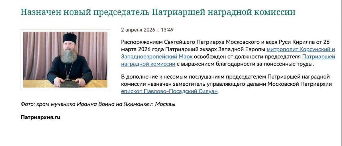 Епископ Павлово-Посадский Силуан назначен председателем Патриаршей наградной комиссии