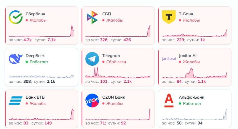 Проблемы с доступом возникли также у клиентов ВТБ, Т-Банка и СБП