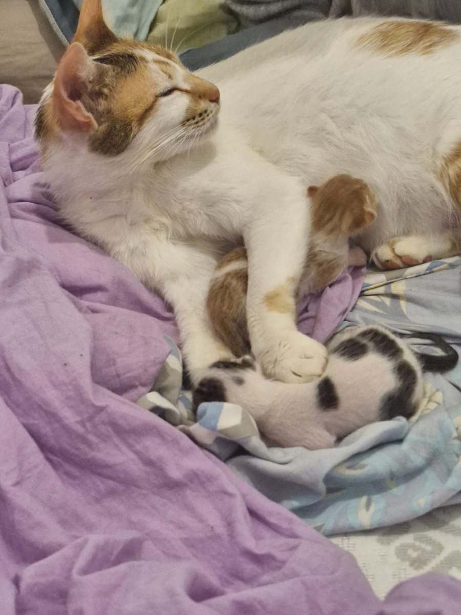 Но соседи уже высказывали недовольство, что мы подкармливаем котов. Мол, из-за нас и к ним во двор коты стали приходить. А теперь они еще и размножаться начали 😂. Так что придется эту кошку стерилизовать, когда перестанет кормить котят.