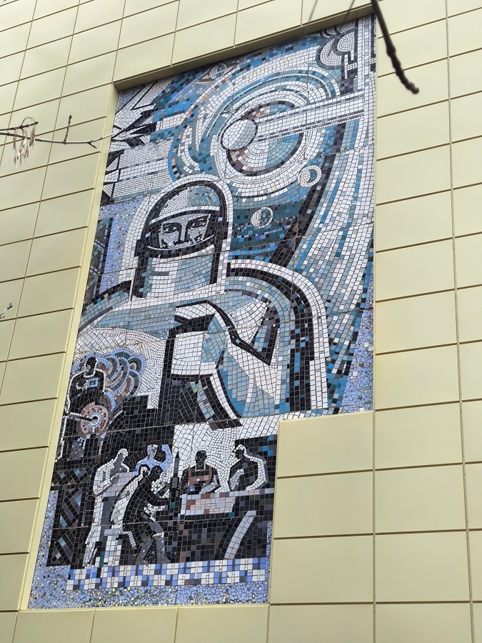 В Курске продолжается ремонт здания бывшего Дома культуры «Аккумулятор», начавшийся в прошлом году, после того, как на состояние объекта обратили внимание общественники. На фасаде находятся две советские мозаики. Были опасения, что они могут быть утеряны, как произошло это несколько лет назад при ремонте здания областного Дворца молодежи на улице Белгородской. Там сбили две уникальные смальтовые мозаики, автором которых является ученик знаменитого мозаичиста Владимира Замкова Вячеслав Ионин. Это были его первые мозаики, выполненные в Курске. Сейчас заканчивают облицовывать фасад ДК «Аккумулятор». Видно, что мозаики сохранили, но части панно, выходящие за форму прямоугольника, обрезали, нарушив композицию. Автор мозаик на здании ДК «Аккумулятор» — Егор Прикот. Мозаичные наборы были сделаны на колпинском комбинате строительных материалов «Победа». Это установил председатель Колпинского отделения ВООПИК Андрей Юдин. В его коллекции архивных фотографий с изображением мозаичных наборов, сде