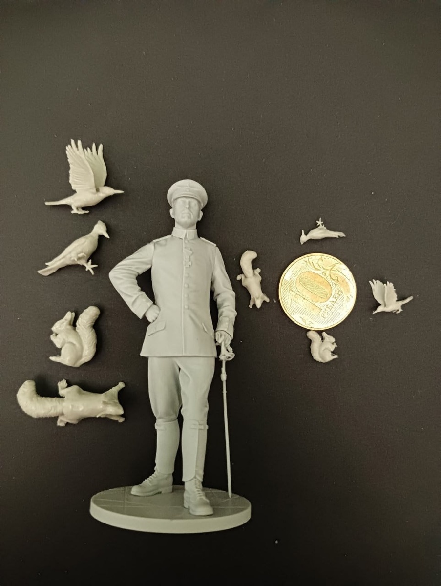 Shot. mini из Санкт-Петербурга выпустила набор "Лесные жители" со смоляными фигурами белок и дятлов в масштабах 1/32 (54 мм) и 1/24 (75 мм).