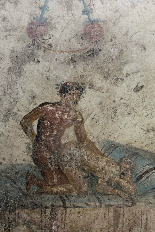 Стены крупнейшего в Помпеях древнего публичного дома, этого подобия «дворца наслаждений», по сей день хранят образцы эротического искусства. Они уцелели, несмотря на гибель города при извержении Везувия в 79 году нашей эры.