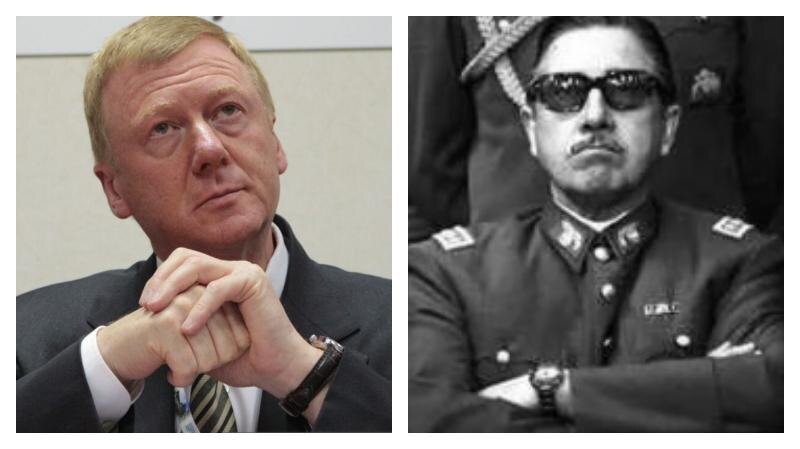 Так вот, в данном интервью он поведал о том, что ещё в 1989 году, группа молодых "реформаторов", в том числе и Анатолий Чубайс, поехала в южноамериканское государство Чили перенимать так сказать "опыт" Пиночета.