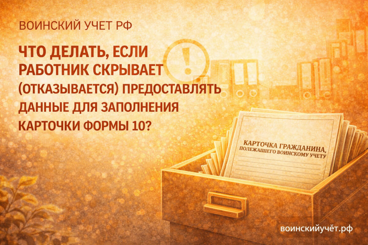 Ситуация абсолютно жизненная: вы к работнику с распростертыми объятиями и карточкой Ф10, а он уходит в глухую "несознанку" и играет в партизана. Скрывает жену, детей, а заодно фактический адрес с телефоном. Воинскийучёт.рф Сразу скажу, в Трудовом кодексе нет обязанности приносить нам свидетельство о браке или рождении детей, и это большая дыра пробел в законодательстве. При этом, ВК требуют от нас полных данных при заполнении Ф10 или приложения 23, к примеру.