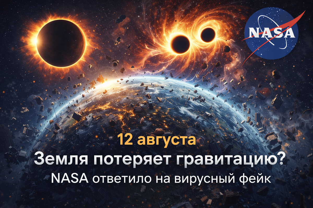 В январе 2026 года интернет захлестнула волна паники. В социальных сетях утверждали, что 12 августа Земля на семь секунд лишится гравитации. Столкновение двух черных дыр должно было вызвать гравитационные волны, которые поднимут в воздух людей, машины и здания. Жертвами катастрофы, по разным оценкам, станут от 40 до 60 миллионов человек.