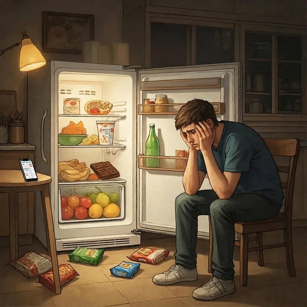 Однажды ко мне на консультацию пришла Марина, 34 года. Она жаловалась на постоянную усталость и набор веса, хотя, по её словам, «почти не ест». Разбирая режим питания, выяснилось: полноценный ужин в 19:00, а потом — три‑четыре похода к холодильнику между 22:00 и 1:00. «Я не голодна, — говорила она, — просто рука сама тянется к еде, пока смотрю сериал». И это не единичный случай: в практике я встречала немало подобных историй, где ночной холодильник становился негласным участником вечернего отдыха.