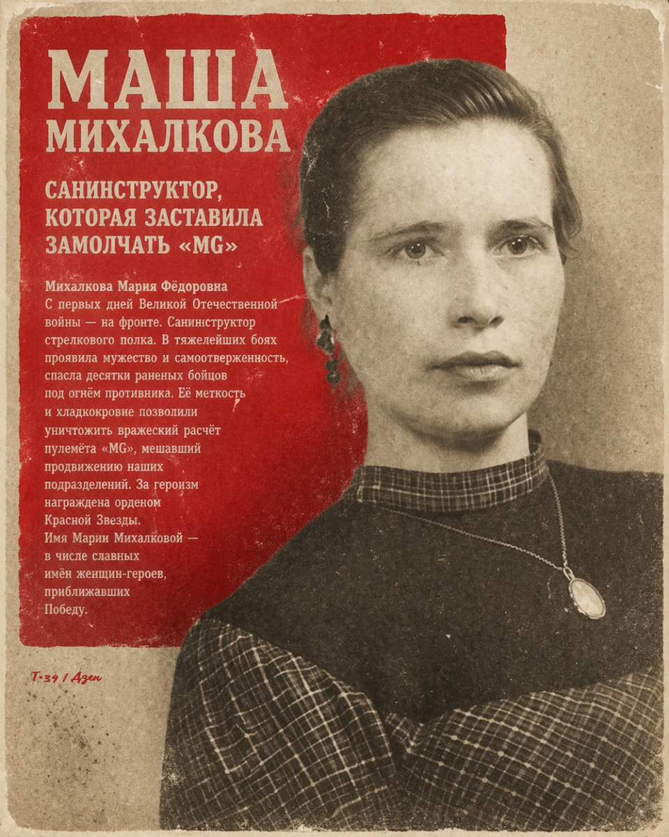 Ещё в конце 1941 года в дивизион пришла добровольцем простая крестьянская девушка, комсомолка. Пришла из группы женщин, работавших на оборонительных рубежах. Маше Михалковой тогда только исполнилось восемнадцать. Злая судьба военного лихолетья и ненавистный враг, растоптавший родную землю, надели на неё тяжёлую серую шинель и кирзовые сапоги не по размеру большие. По штату она числилась санинструктором дивизиона. По делу же стала незаменимым боевым разведчиком — пытливым, смелым, находчивым.