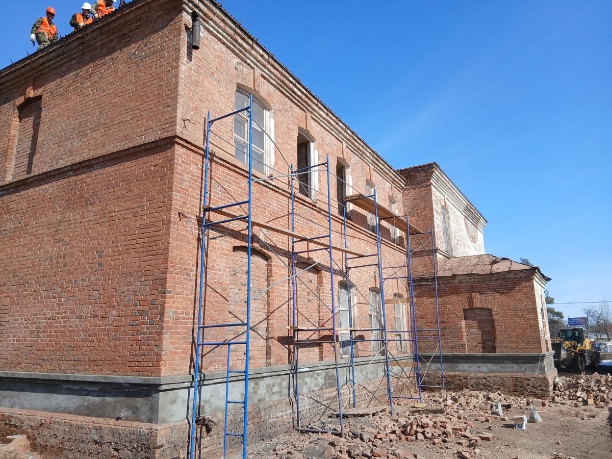 Ведутся работы по по очистке фасада в создании первоначального исторического вида.