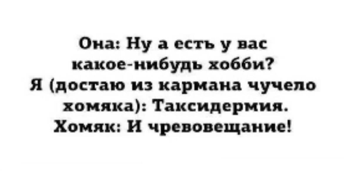Великая целительная сила мемов заключается в том, что есть темы и ситуации, которые людям неудобно обсуждать друг с другом. Сегодня не обязательно идти к семейному психологу, когда можно отправить смешную картинку, намекнуть, разрядить "грозовые тучи" между мужчиной и женщиной. Любите смеяться не только над другими, но и над собой? Тогда вам ко мне в телеграм-каналы: Теперь стало весело и в MAX. Подписывайтесь. *** Знакомство с девушкой - это всегда волнительно. Попробуйте удивить её на первом свидании... *** Любовь - это странная химия. Идешь такой по улице, видишь девушку в машине и щёлк что-то в голове. Love is... *** Читателям, кому глубоко за 40. *** Второго свидания, конечно же, не было... *** Сватаясь, будь предельно честен... *** При разводе и имя заберёт... *** Всегда завидую таким настоящим мачо... *** Типичная врачебная ошибка... *** Абьюз - это фундамент брака... *** Про коварство женщин все знают, вот пример мужского... *** "Все счастливые семьи похожи друг на друга, каж