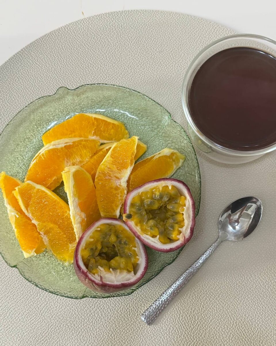 ! Часто мой завтрак выглядит так: фрукты и кофе! 🍊☕️