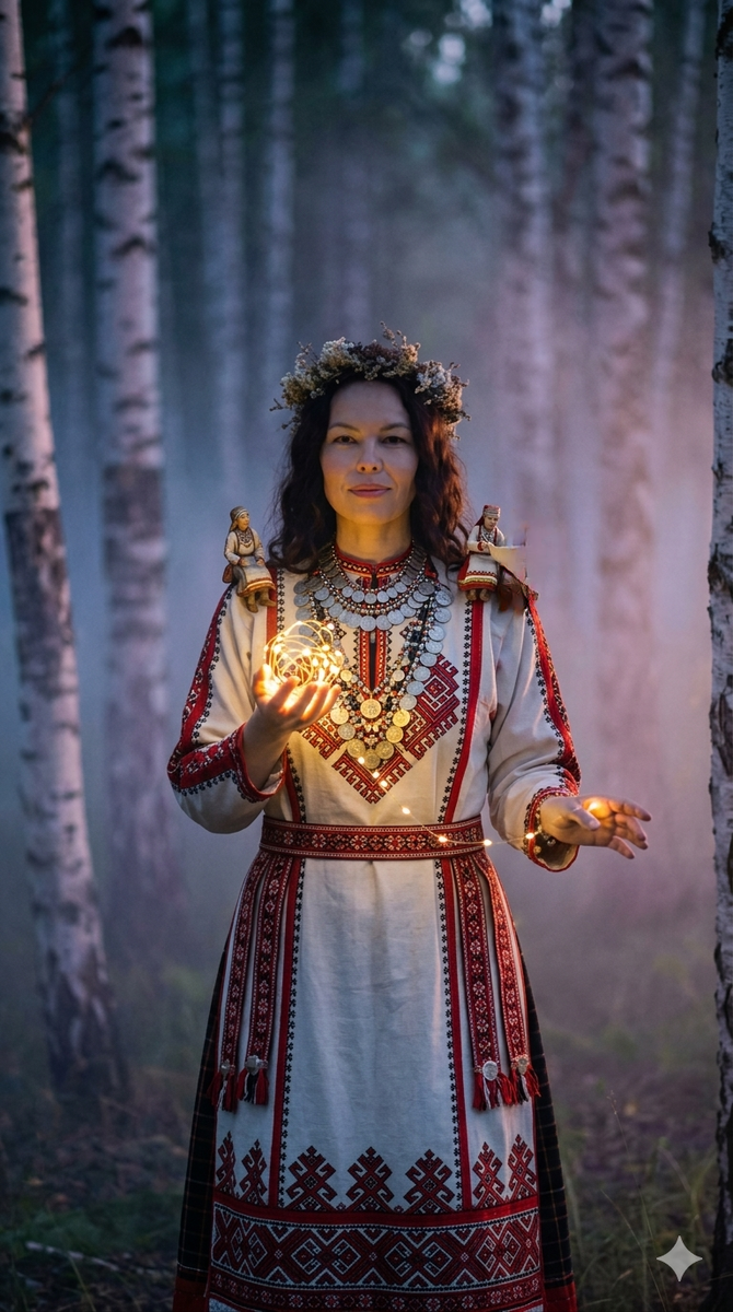 Чуваши представляли Пирешти в женском облике: молодой девушки или седой старушки, обычно в белом одеянии. Мне это всегда нравилось: защитник не суровый воин с мечом, а скорее старшая сестра или мать, которая следит за тобой с добротой. Живёт она в доме, появляется по ночам — прядет пряжу или ткет холст. И здесь кроется глубокая символика: связь Пирешти с прядением не случайна, она отражает связь ангела-хранителя с судьбой человека. Вот она, та самая нить судьбы!