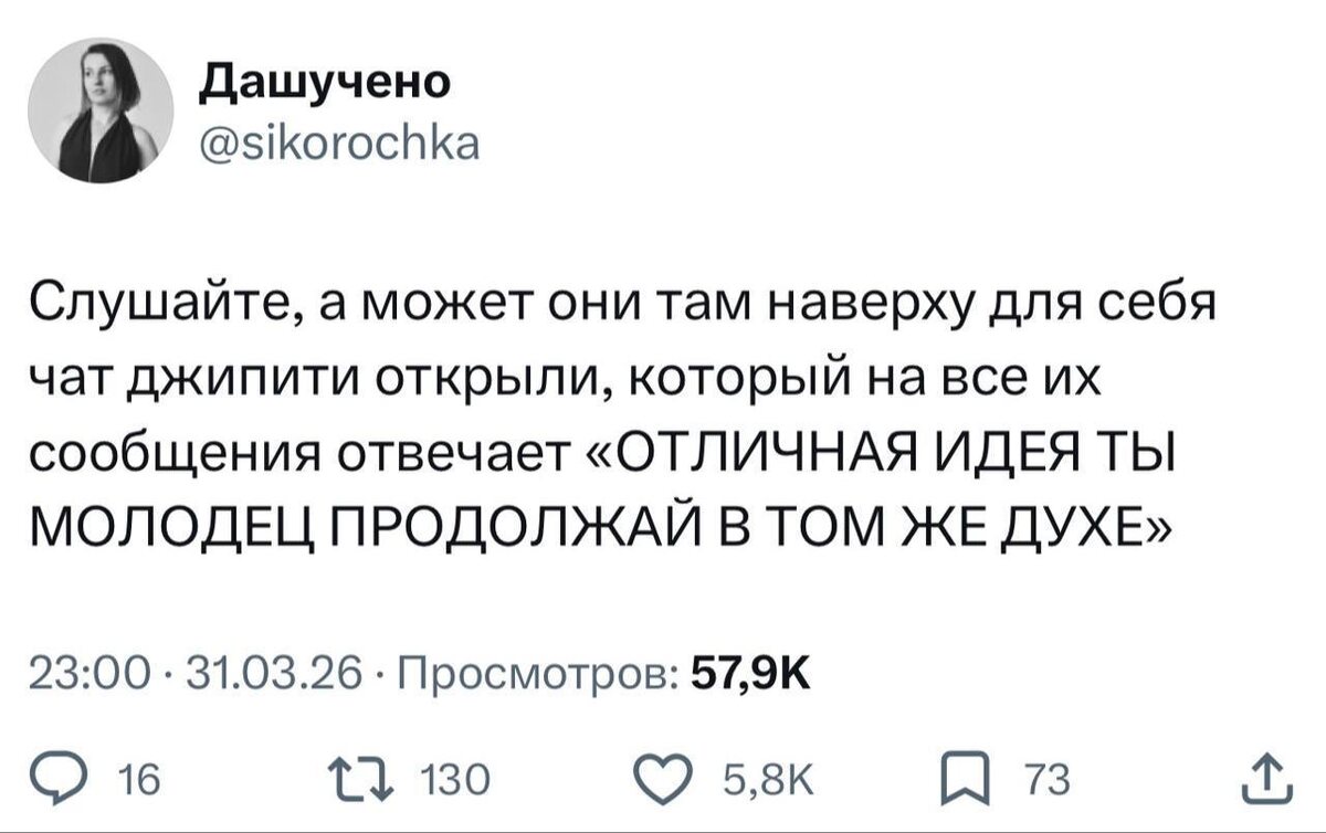 Да их там «наверху» вообще не существует. Уже давно живем под властью нейронки.