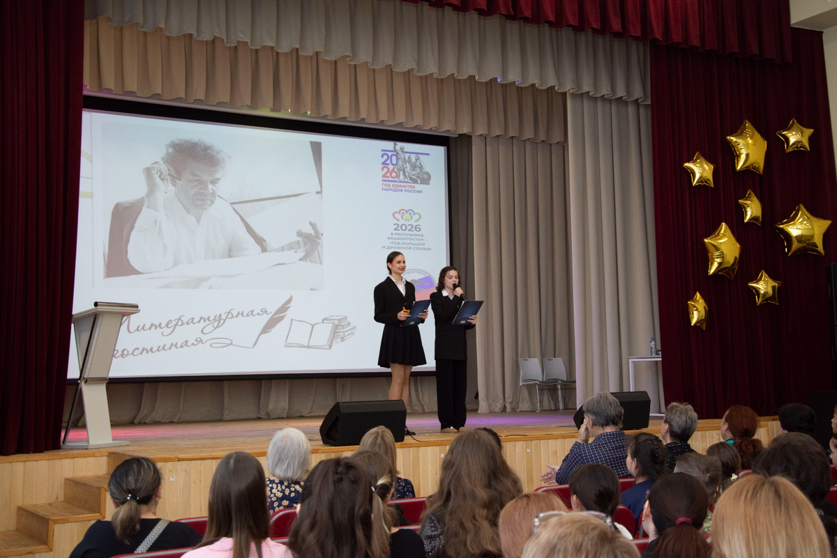 О вечере, посвящённом классику. В полилингвальной многопрофильной гимназии № 1 в рамках Всероссийской недели детской и юношеской книги состоялась встреча в литературной гостиной «Радость нашего дома». В мероприятии, посвящённом великому мастеру слова, классику башкирской и российской литературы, народному поэту Башкортостана Мустаю Кариму, приняли участие почётные гости. В их числе — дочь поэта, директор Фонда им. М. Карима Альфия Мустаевна Каримова, заслуженный работник культуры России, редактор журнала «Уфа» и газеты «Уфимские ведомости» Галина Ишмухаметова, директор издательства «Инеш» Гульнара Белозёрова, сценарист, переводчик, заслуженный деятель искусств РБ, председатель Союза кинематографистов РБ Зухра Буракаева, главный редактор газеты «Истоки», поэт и драматург Айдар Хусаинов, представитель фонда им. М. Карима Нафиса Билалова, начальник отдела образования администрации города Ильшат Кутлушин, заведующая отделом Информационно-методического центра Ольга Петровна Алиева, директор