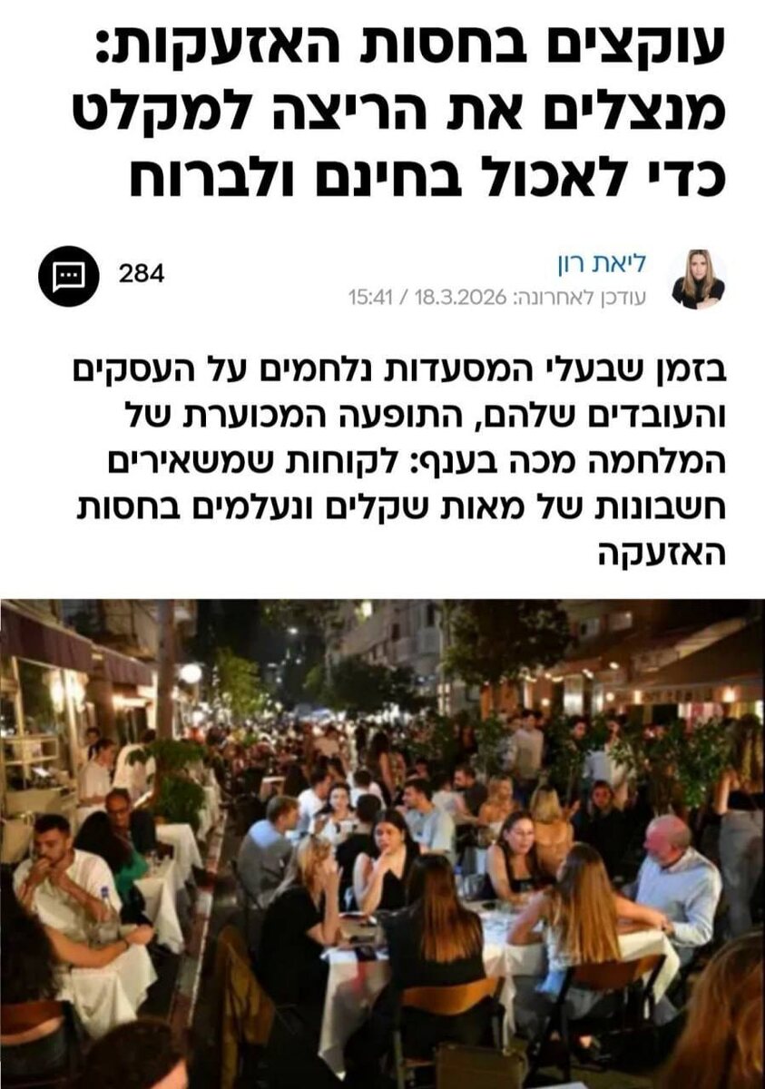 ‼️В Израиле можно бесплатно есть в ресторанах. Схема такая: израильтяне заказывают еду, а во время тревоги убегают в укрытие, не заплатив.