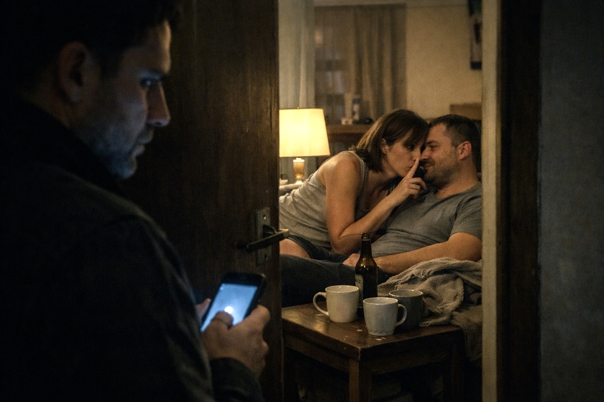 Третья неделя октября. Я вернулся с работы раньше на час. Ключ повернулся бесшумно — я сам смазывал замки. В прихожей стояли его кроссовки. И её туфли. Рядом, носки к носкам. Я прошёл на кухню — пусто. Заглянул в гостиную — его ноутбук открыт, на столе чашка чая. Её чашка.